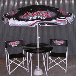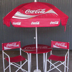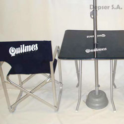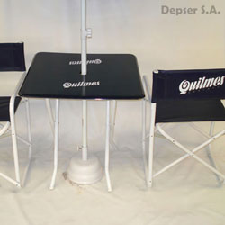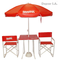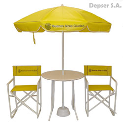 Línea de productos semitop: Mesa, sillón director y sombrilla.