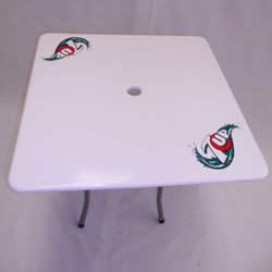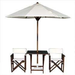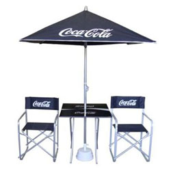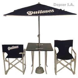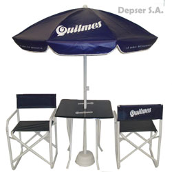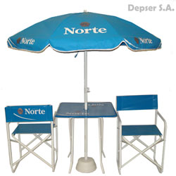 Línea de productos semitop: Mesa, sillón director y sombrilla.